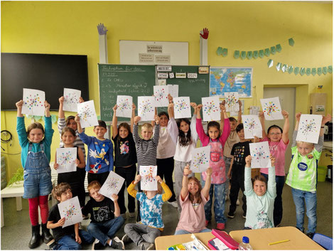 In Phantasiegeschichten dürfen sie mit ihrer Vorstellungskraft auf Reisen gehen und ihre eigenen Bilder im Kopf entstehen lassen, die dann zu wunderschönen Kunstwerken aus Farben oder Legematerial werden.
