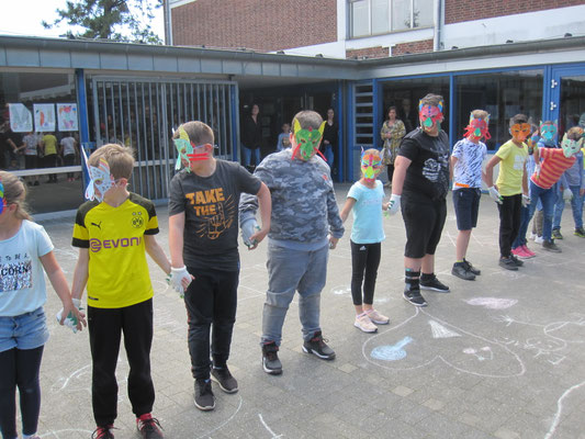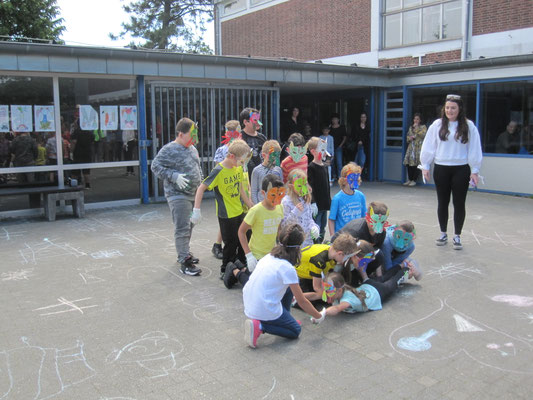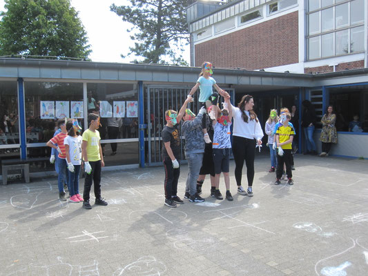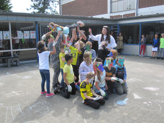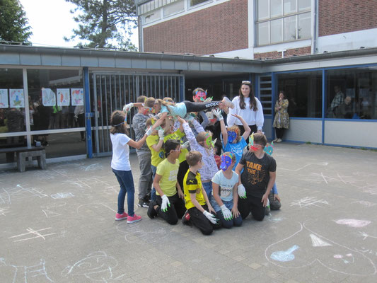 Passend zu unserem Aachener-Modell-Motto fand auch unsere diesjährige Projektwoche vom 22. bis 25. Mai 2019 unter der Überschrift Musik - Kunst - Literatur (MuKuLi) statt. Anders als in den vergangenen Jahren gab es ganze 13 verschiedene Projektgruppen, die von allen Lehrer und Lehrerinnen sowie den OGS-Mitarbeiterinnen und unserer Schulsozialarbeiterin geleitet wurden. So hatten die Schülerinnen und Schüler eine große Auswahl von Angeboten, für die sich sich entscheiden konnten.