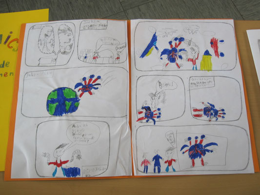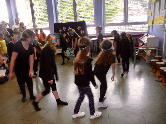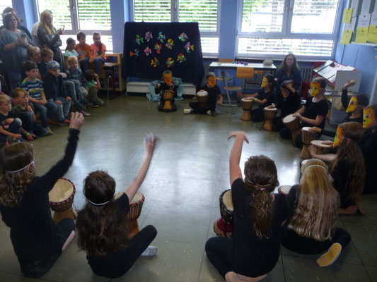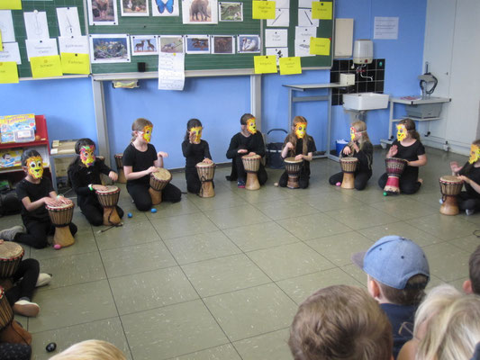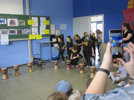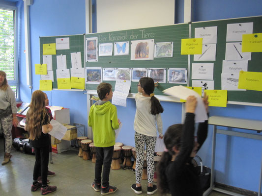 In vielen Klassen wurden einzelne Künstler oder Komponisten, Musikstars und Instrumente besprochen. Das musikalische Können, aber auch Plakate und andere Kunstergebnisse, wie z.B. Masken zeigen sich die Klassen gegenseitig bei den Schultreffs. Manche Klassen lesen eine Lektüre gemeinsam im Unterricht.