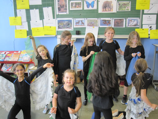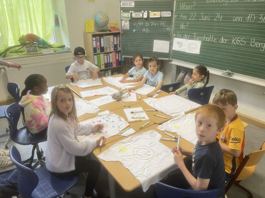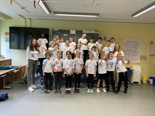 Ein weiteres Highlight war das Gestalten eigener T-Shirts, die passend zum jeweiligen Klassentier entworfen wurden. Mit Farben, Mustern und kreativen Ideen verwandelten die Kinder einfache Shirts in echte Unikate, die sie bei der abschließenden Präsentation ihrer Tänze stolz trugen.