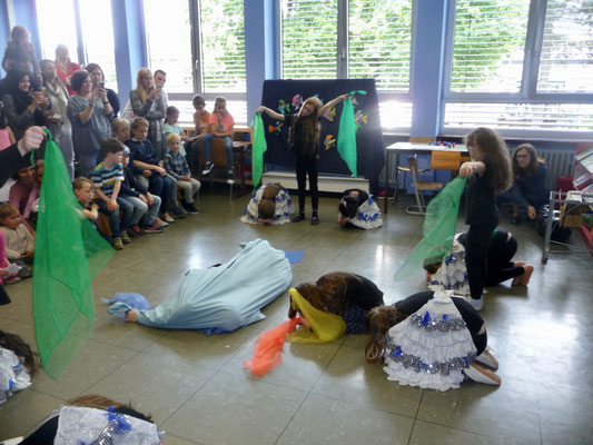 Am letzten Tag der Projektwoche präsentierten die Klassen ihre einstudierten Tänze vor einem begeisterten Publikum aus Lehrkräften, Eltern und Mitschülern. Der Applaus und die strahlenden Gesichter zeigten, wie viel Freude und Stolz die Kinder bei dieser besonderen Erfahrung empfanden.